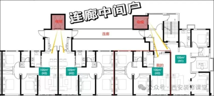买房并不是随心所欲,有时候条件限制只能退而求其次,例如中间连廊户,谁都知道这种户型通风差,北向光线受影响,肯定不如边户,但实际上连廊户的问题并没有这么简单。