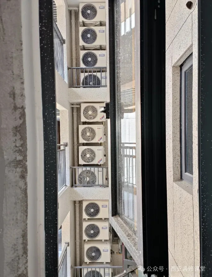 网友@好人卡:连廊北边大多数作为空调外机位置的设计点,但是有的小区设计极其不合理,导致外机密密麻麻,一旦有一个外机出问题着火,整栋楼的连廊成了一个大烟囱,后果不堪设想!